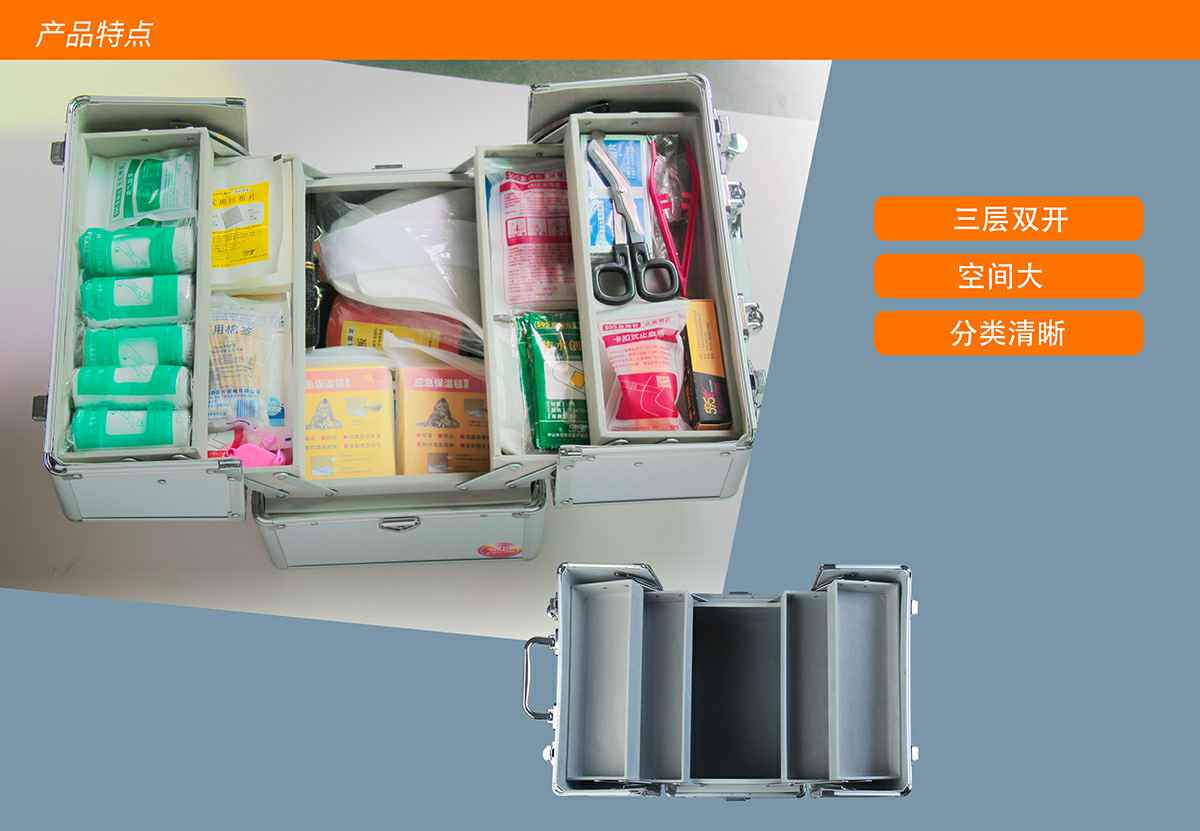 西安夏宇在线教育有限公司综合急救箱,独特的箱体设计,适用于劳保、厂矿、公共场所、办公室、车间、学校、社区、健身房、实验室、建筑工地等人员密集的场所及防灾减灾等领域。